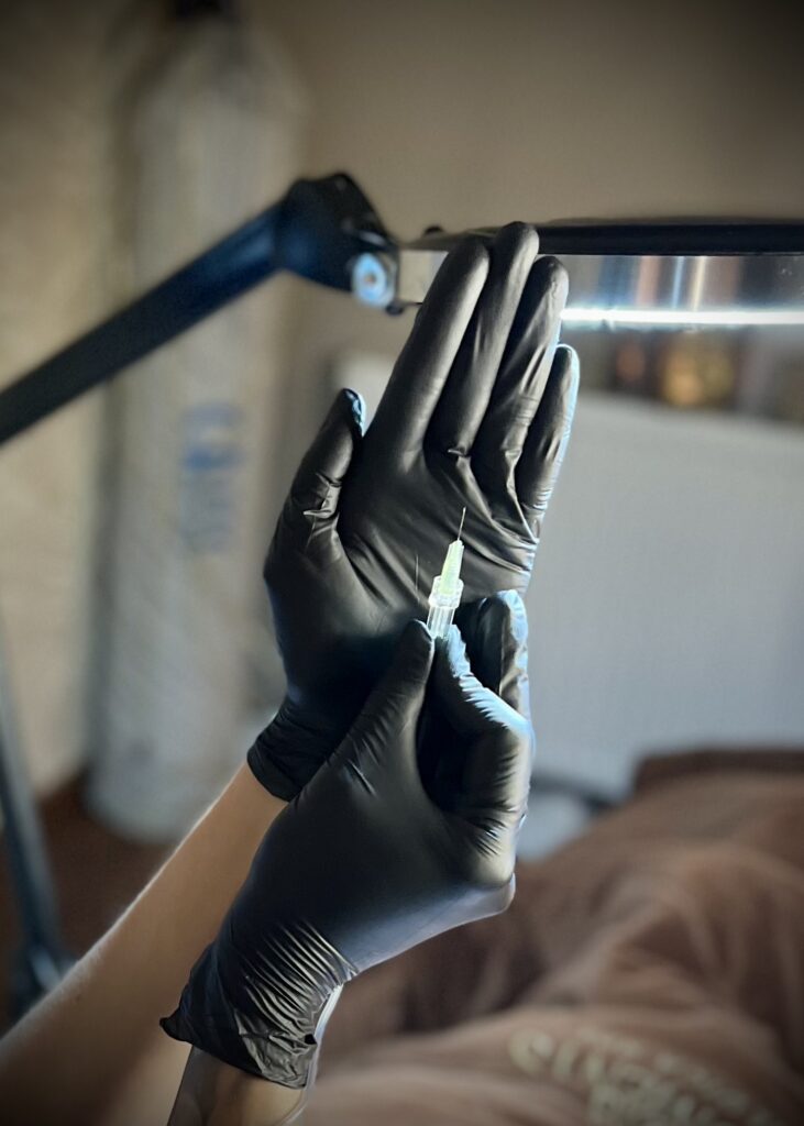 2. Iniekcja: Przy pomocy cienkiej igły gaz jest wprowadzany pod skórę w kontrolowany sposób, zgodnie z odpowiednią dawką, która jest dobierana indywidualnie.